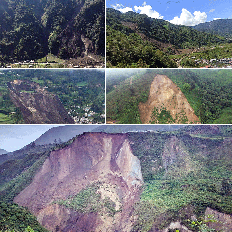 En el caso específico de movimientos en masa en Ecuador, a cargo del IIGE, datos históricos muestran que el número de eventos es muy alto debido al terreno montañoso escarpado. Así, en los últimos 20 años se han registrado en el país más de 7.000 tipos de movimientos en masa (colapsos, colapsos en río, deslizamientos, flujo de detritos). La mayoría de los movimientos en masa reportados en el pasado fueron causados por lluvias, y el cambio climático (CC) podría incrementar aún más su recurrencia y sus efectos adversos: por ejemplo, un estudio del BID (2022) estima que los daños potenciales por deslizamientos en el país, para el 2050, podrían ser aproximadamente 1,5 veces superiores si se incorporan los efectos adversos del CC.